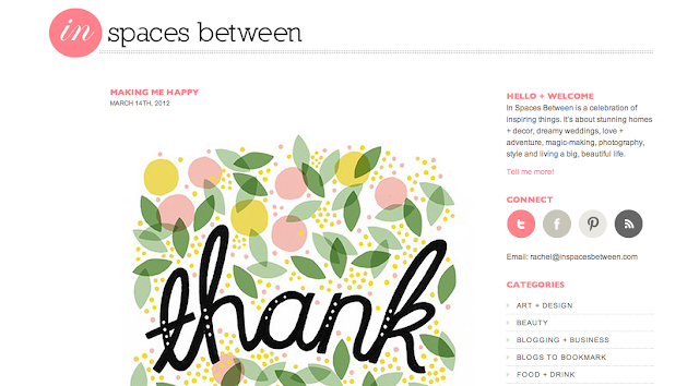 What Jess’ advice and mentoring does for my health, Rach has done for my little dark voice, the devil sitting on my shoulder, or what Gabrielle Bernstein likes to call the ego, or fear. Her positivity radiates through each and every one of her posts. After an hour perusing her beautiful blog, In Spaces Between, it’s difficult not to feel as though Rach has been a friend of yours for years. Prepare for a life overhaul (in the most fantastic of ways!).